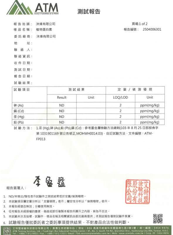 米蛋白+豌豆蛋白-重金屬檢驗 2025