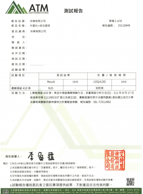 米蛋白+綜合蔬菜-農藥410項檢驗 2025
