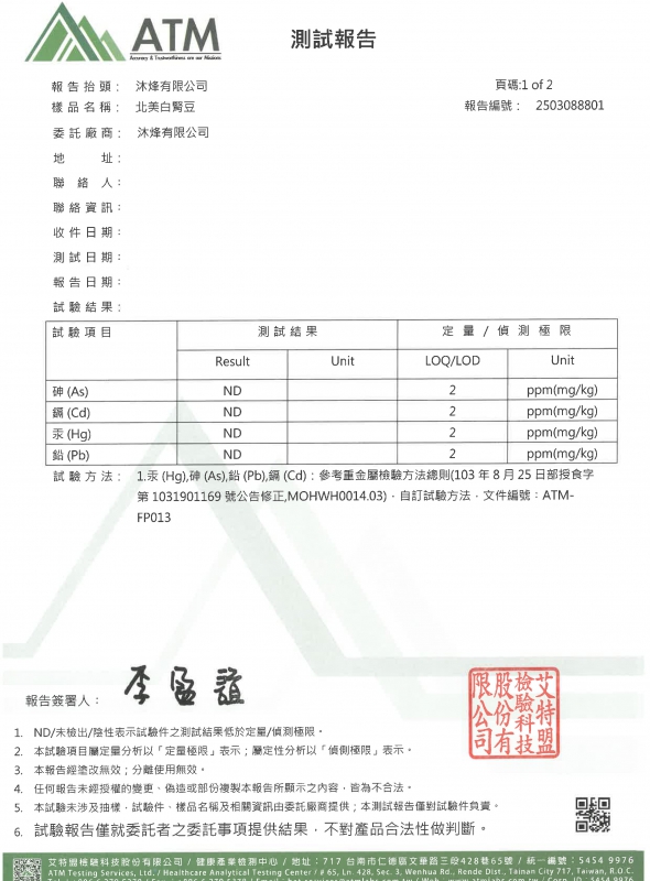北美白腎豆-重金屬檢驗 2025