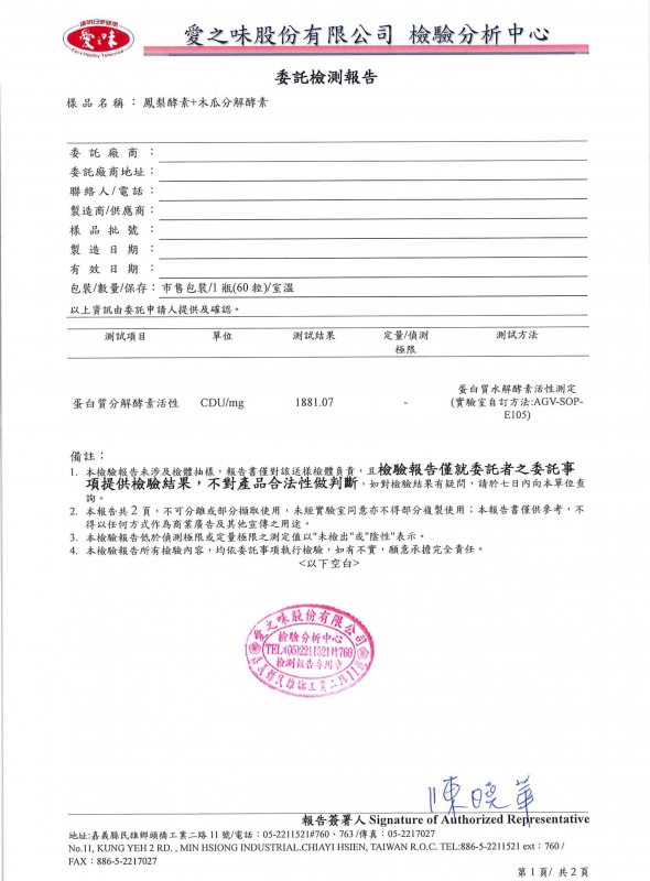 鳳梨酵素+木瓜分解酵素-蛋白質分解酵素活性檢驗 2024