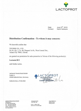 乳清蛋白-原廠授權證明 2018