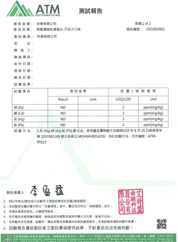 乳清蛋白(巧克力)-重金屬檢驗 2025