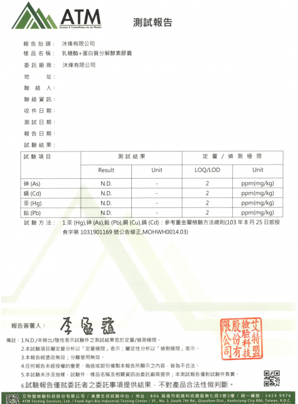 乳糖分解酵素+蛋白質分解酵素-重金屬檢驗 2025