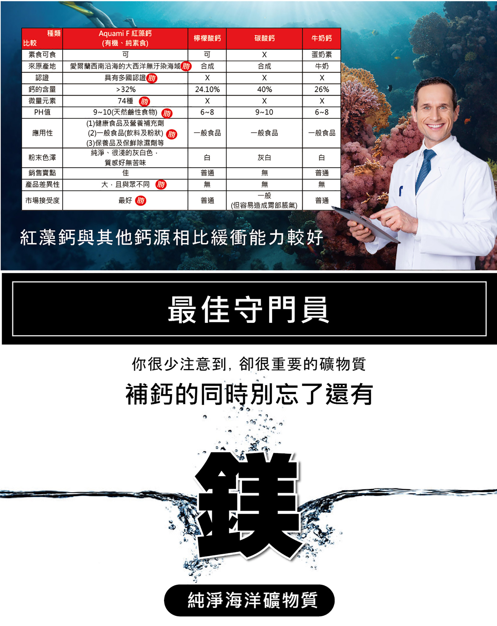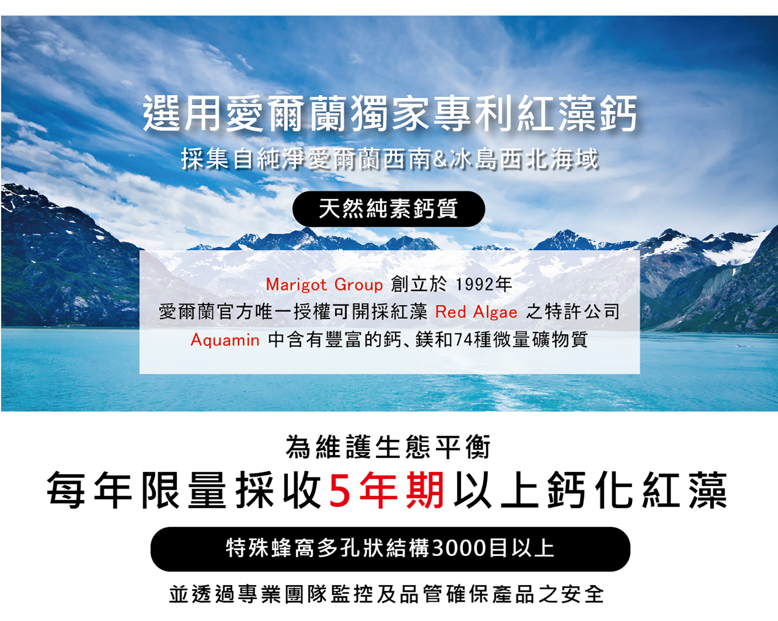 每粒含有紅藻鈣380mg,海洋鎂120mg