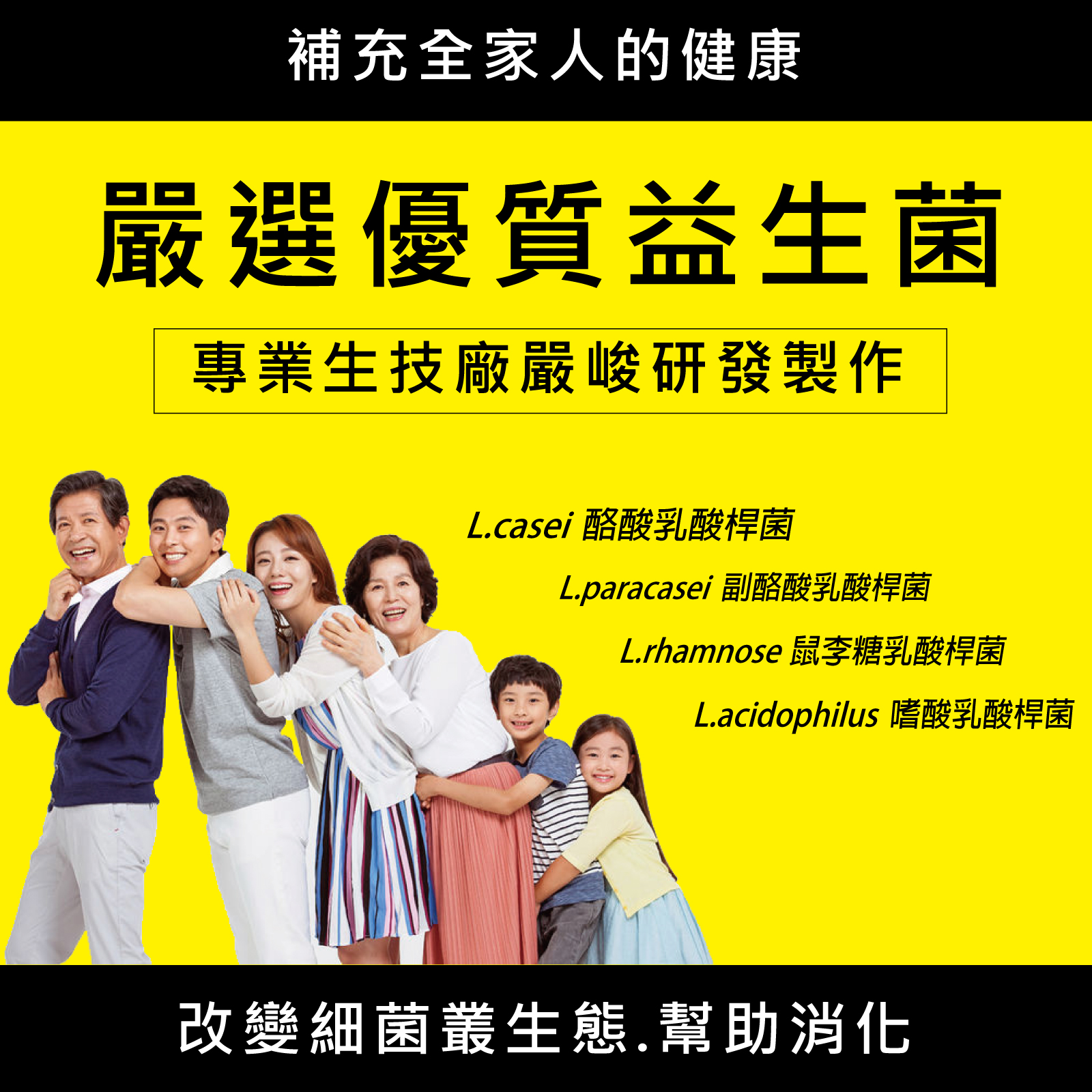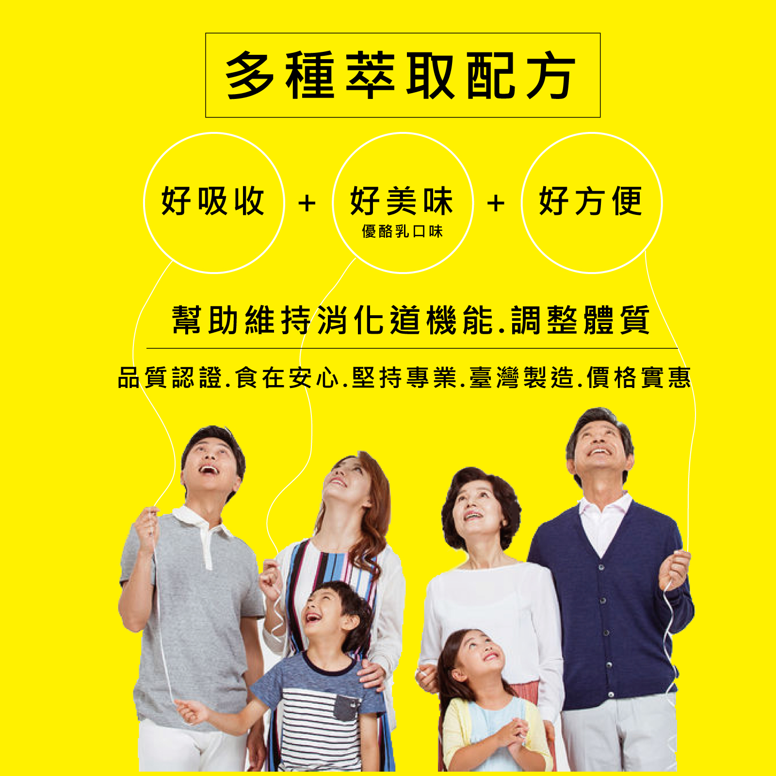 | 商品成分 | 蘆薈萃取物(含凝膠、麥芽糊精)、木寡糖粉末、膠原蛋白粉末、優酪乳(砂糖、脫脂奶末、 麥芽糊精、 全脂奶粉、葡萄糖、檸檬酸、酵母精粉、香料、脂肪酸甘油酯(植物性))、益生菌粉(L. casei. 酪酸乳酸桿菌、 L. paracasei 副酪酸乳酸桿菌、L. Rhamnose鼠李糖乳酸桿菌、L. Acidophilus 嗜酸乳酸桿菌、脫脂奶粉、 麥芽糊精、寡糖)、乳糖、二氧化矽 |