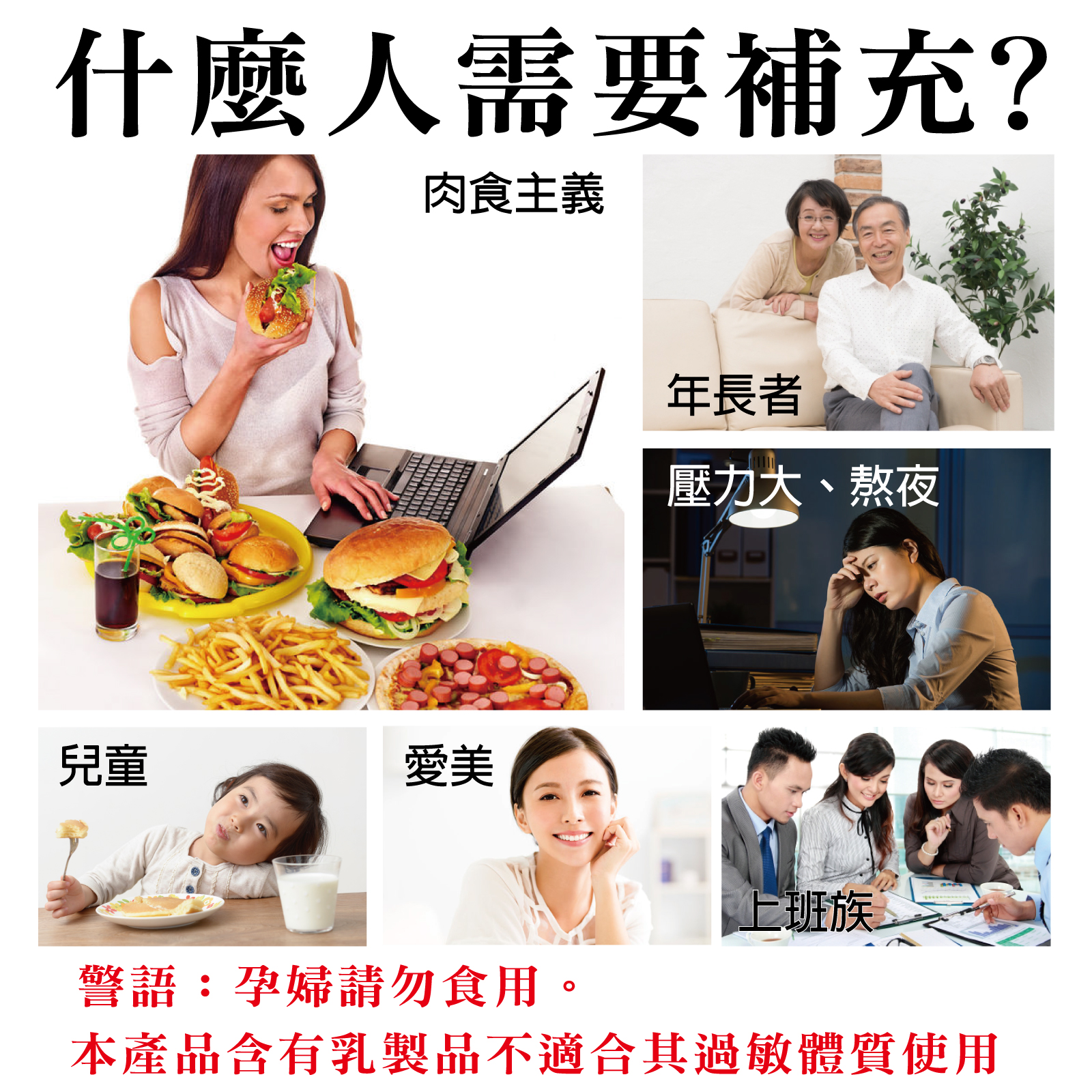 | 食用方式 | 1. 三至六歲兒童每日半包,飯前飯後均可。 2. 六至十二歲兒童每日一包,飯前飯後均可。 3.成人每日早晚各2包,飯前飯後均可。 (可直接口服或加入飲料、牛奶、果汁內風味更佳) |