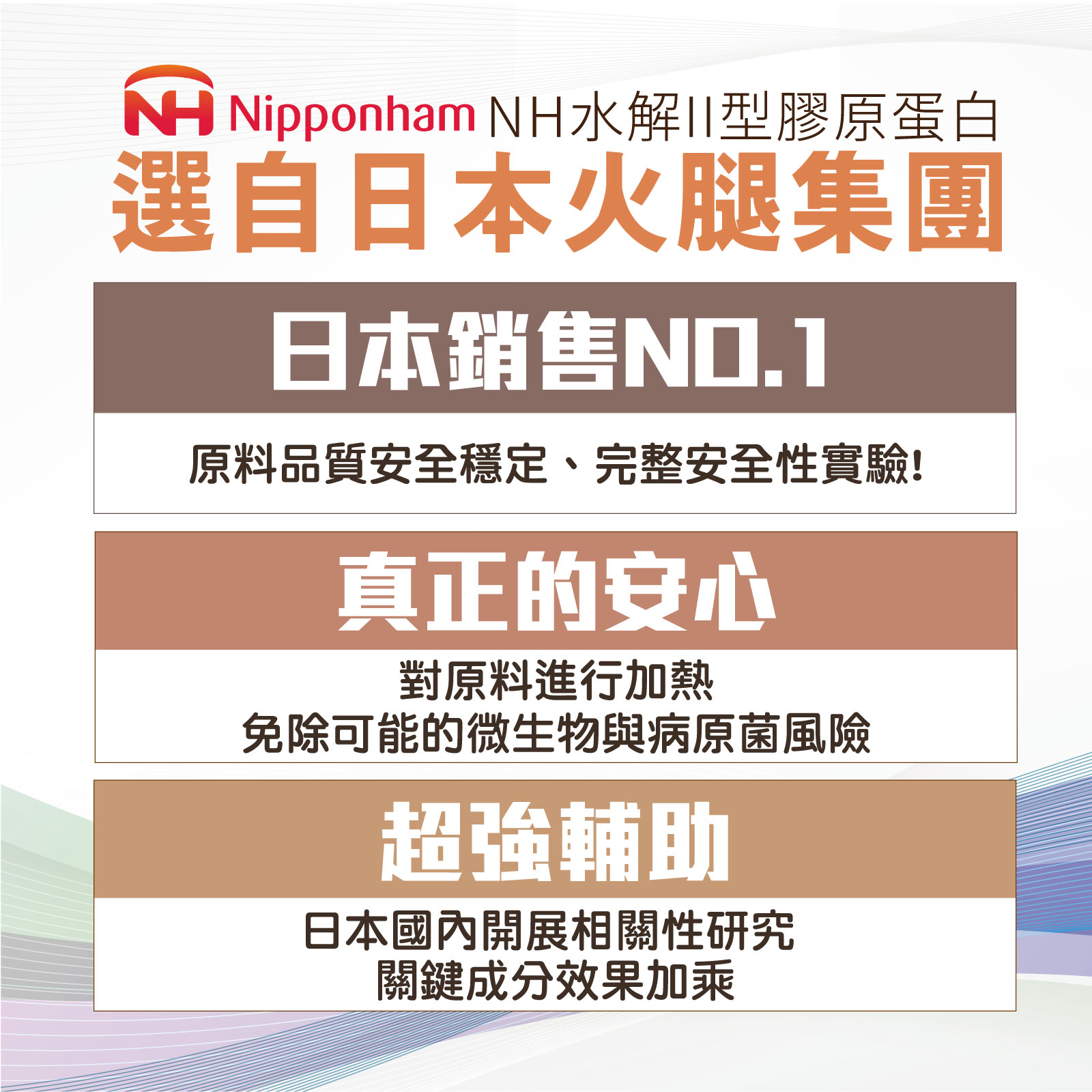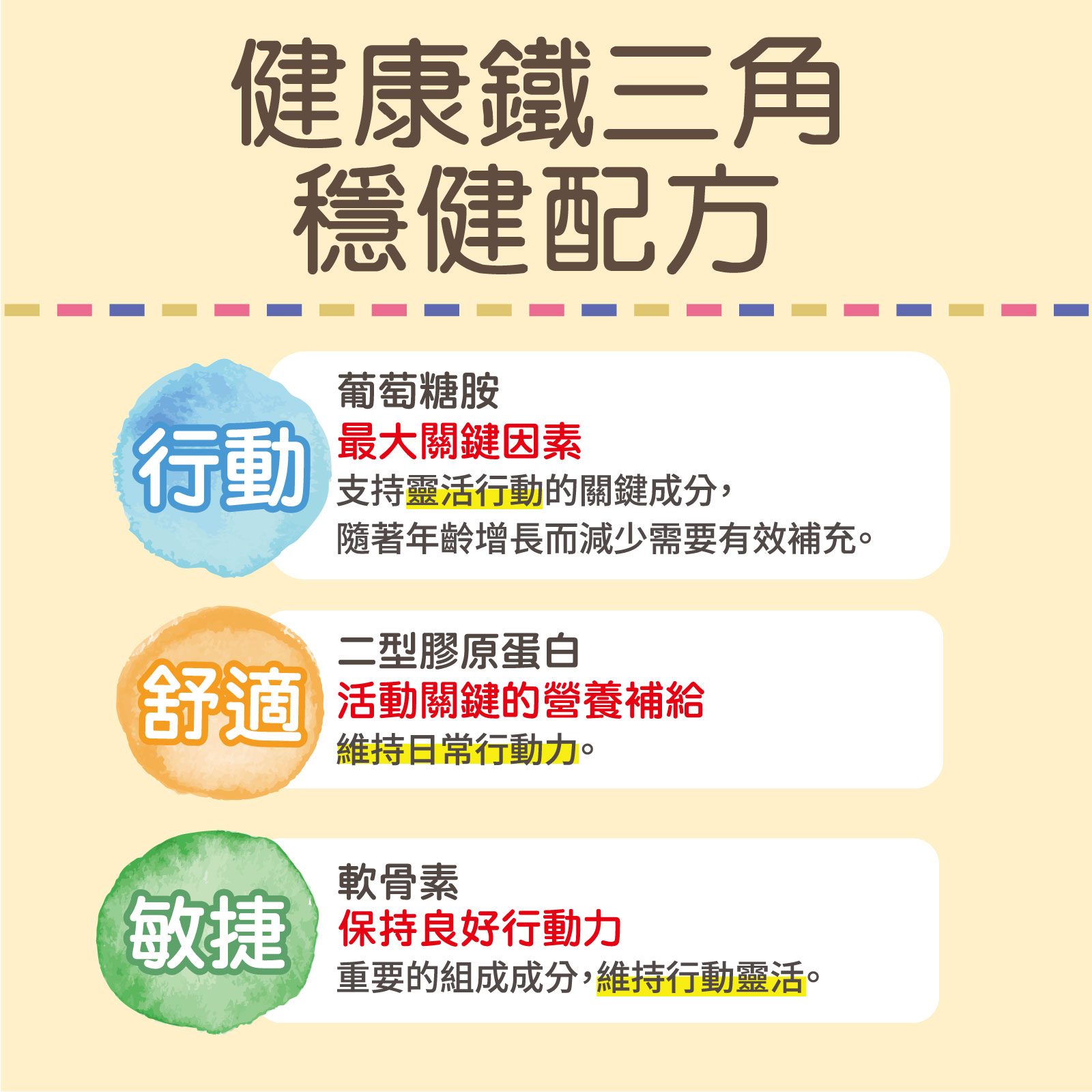 葡萄糖胺鹽酸鹽、膠原蛋白複合物(含豬二型膠原蛋白、多醣體)、甲基硫醯基甲烷、豬軟骨素、硬脂酸鎂