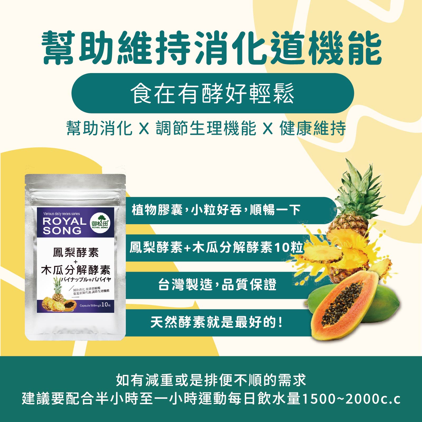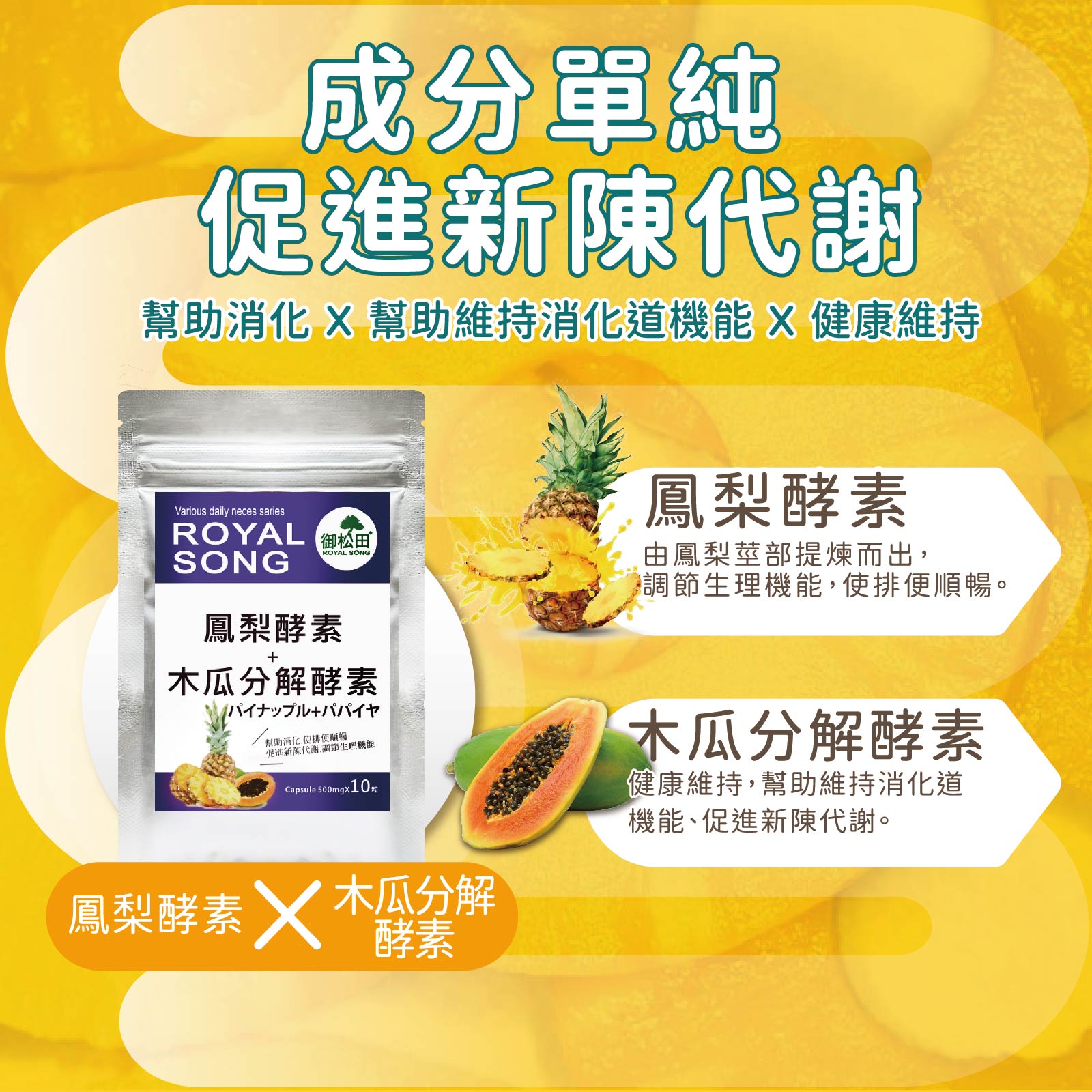 • 木瓜分解酵素,促進新陳代謝