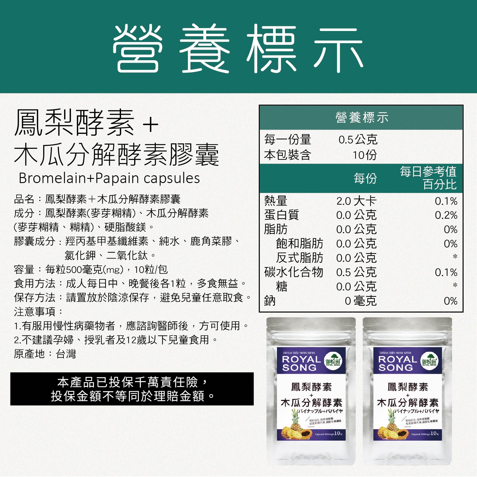 商品成分鳳梨酵素(麥芽糊精)、木瓜分解酵素 (麥芽糊精、糊精)、硬脂酸鎂