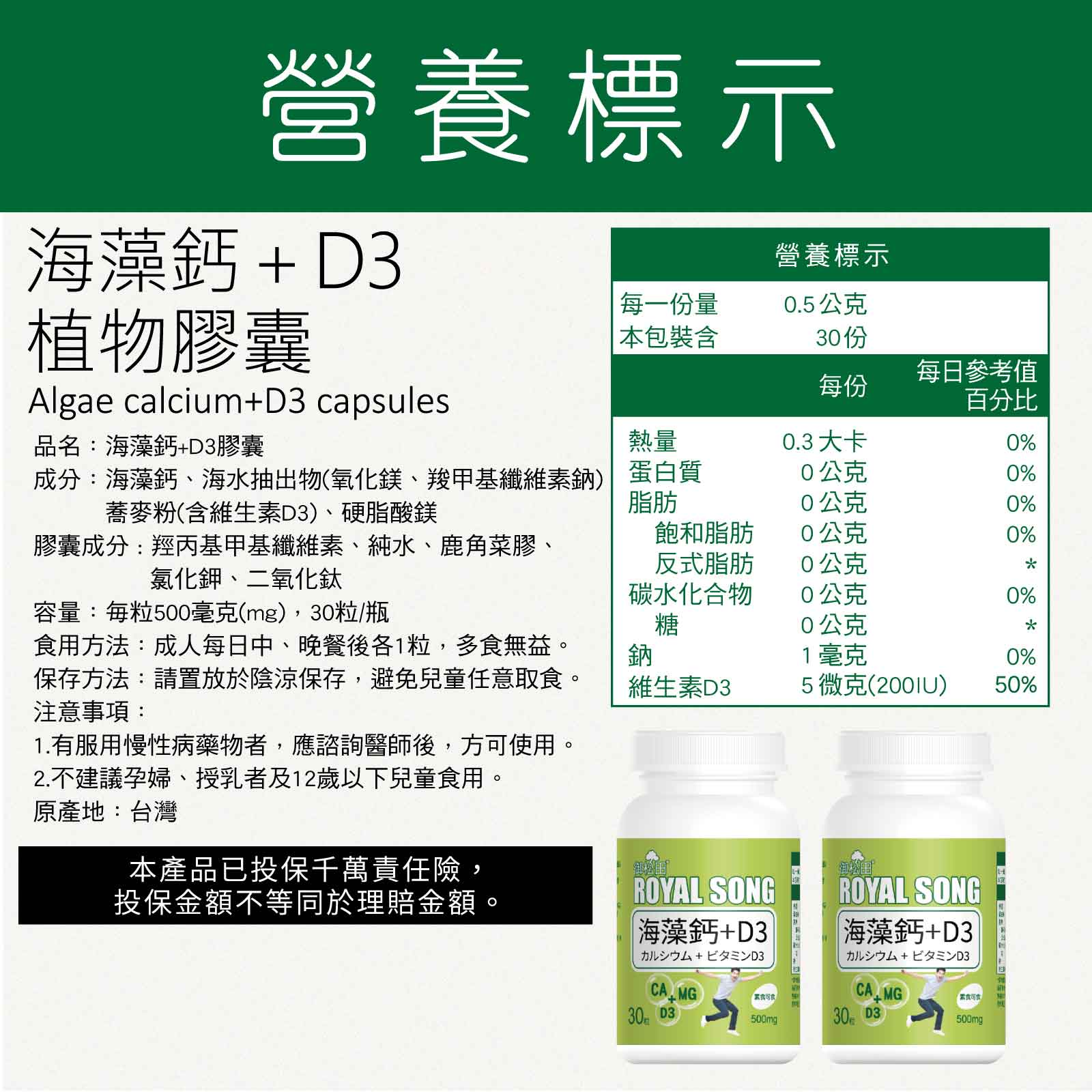 海藻鈣+D3膠囊(30粒)