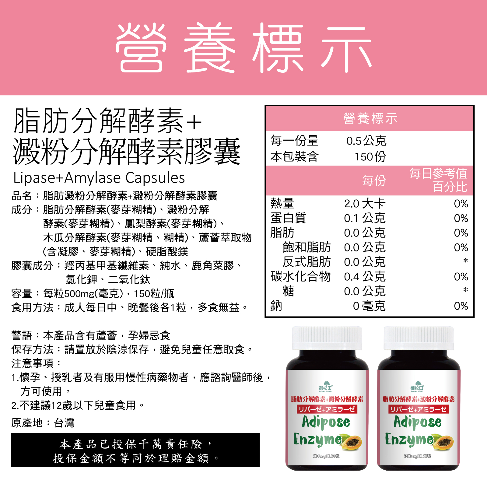 | 投保產品責任險字號/重金屬檢驗 | 1766713ML000882號(新安東京海上產物保險) 脂肪分解酵素+澱粉分解酵素-重金屬檢驗 點我查看 |