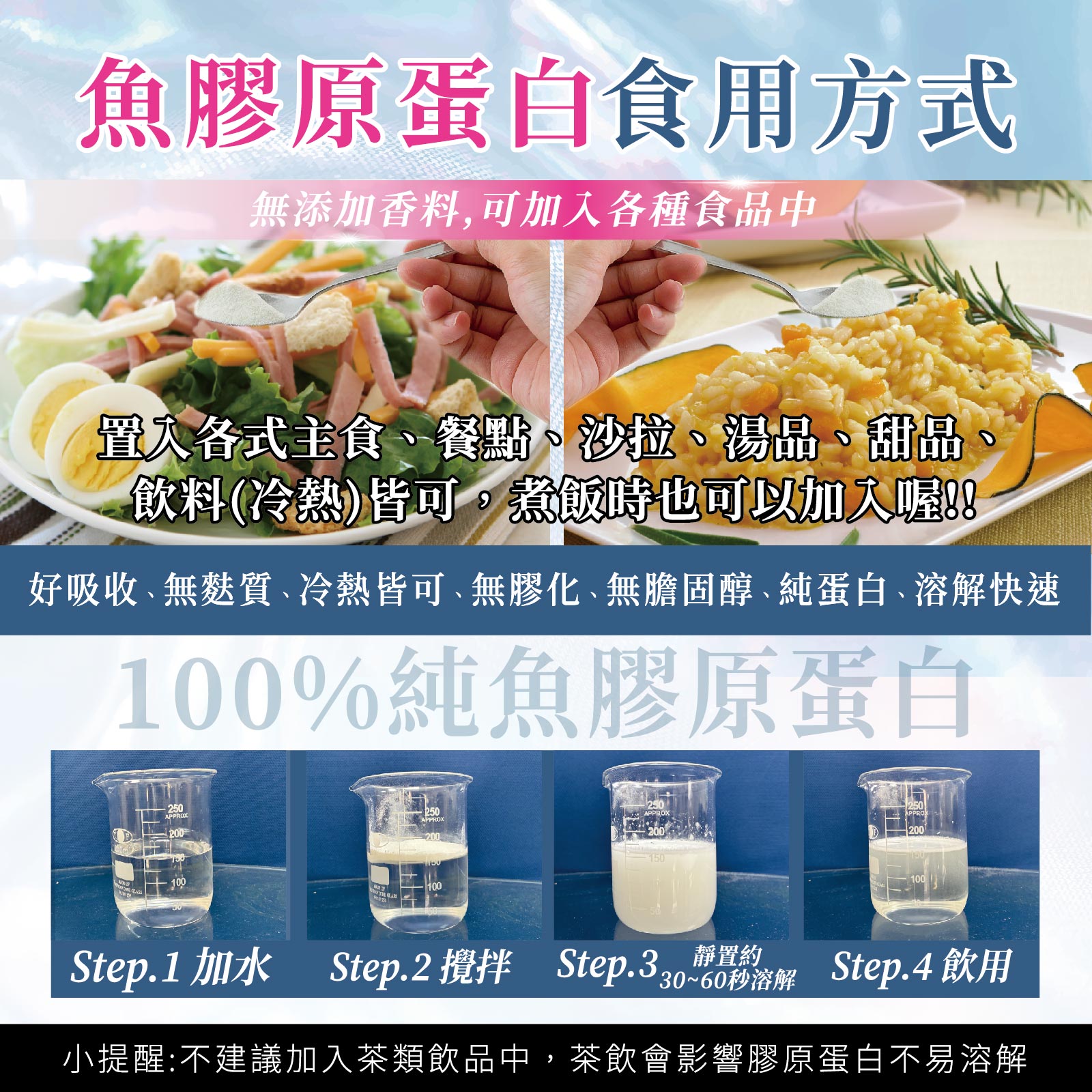 ※溫馨提醒:本商品為魚膠原蛋白,對魚類過敏者或素食者建議評估自身狀況再食用。