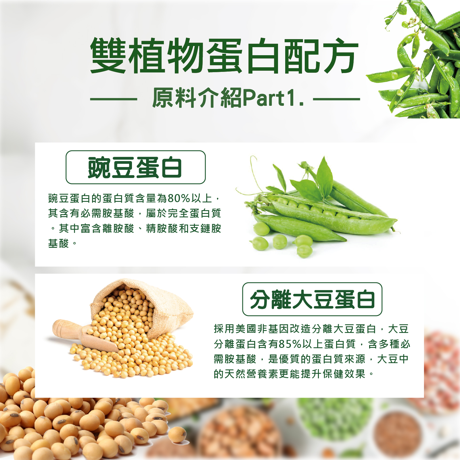 豌豆分離蛋白、大豆分離蛋白、燕麥粉、海藻鈣、