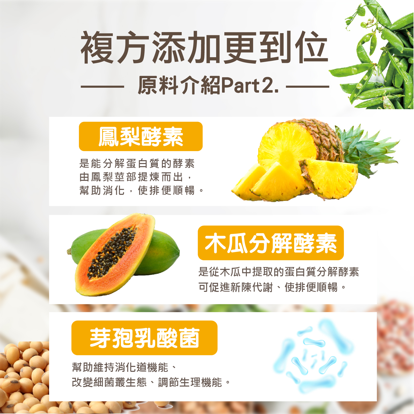 添加鳳梨酵素、芽孢乳酸菌 促進新陳代謝