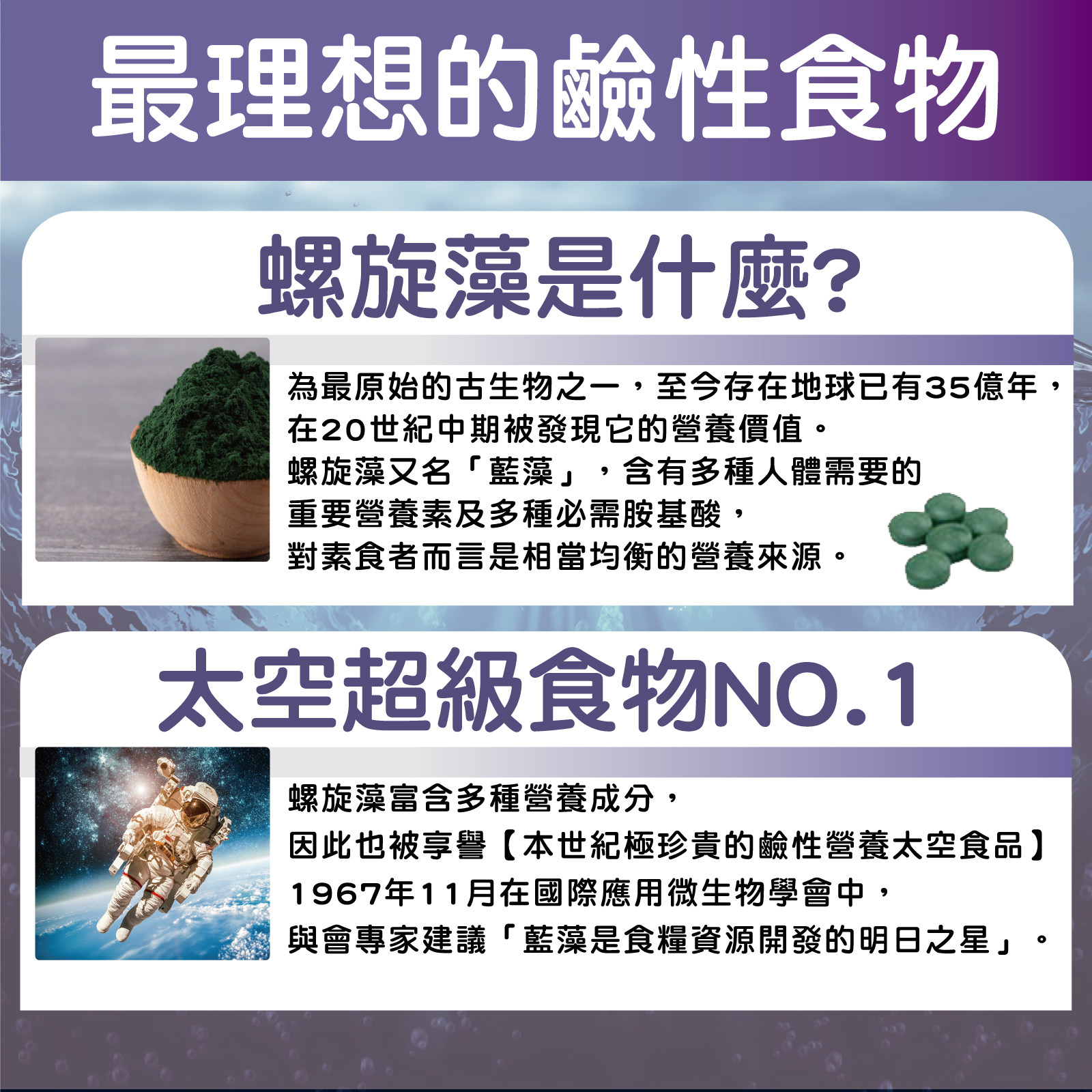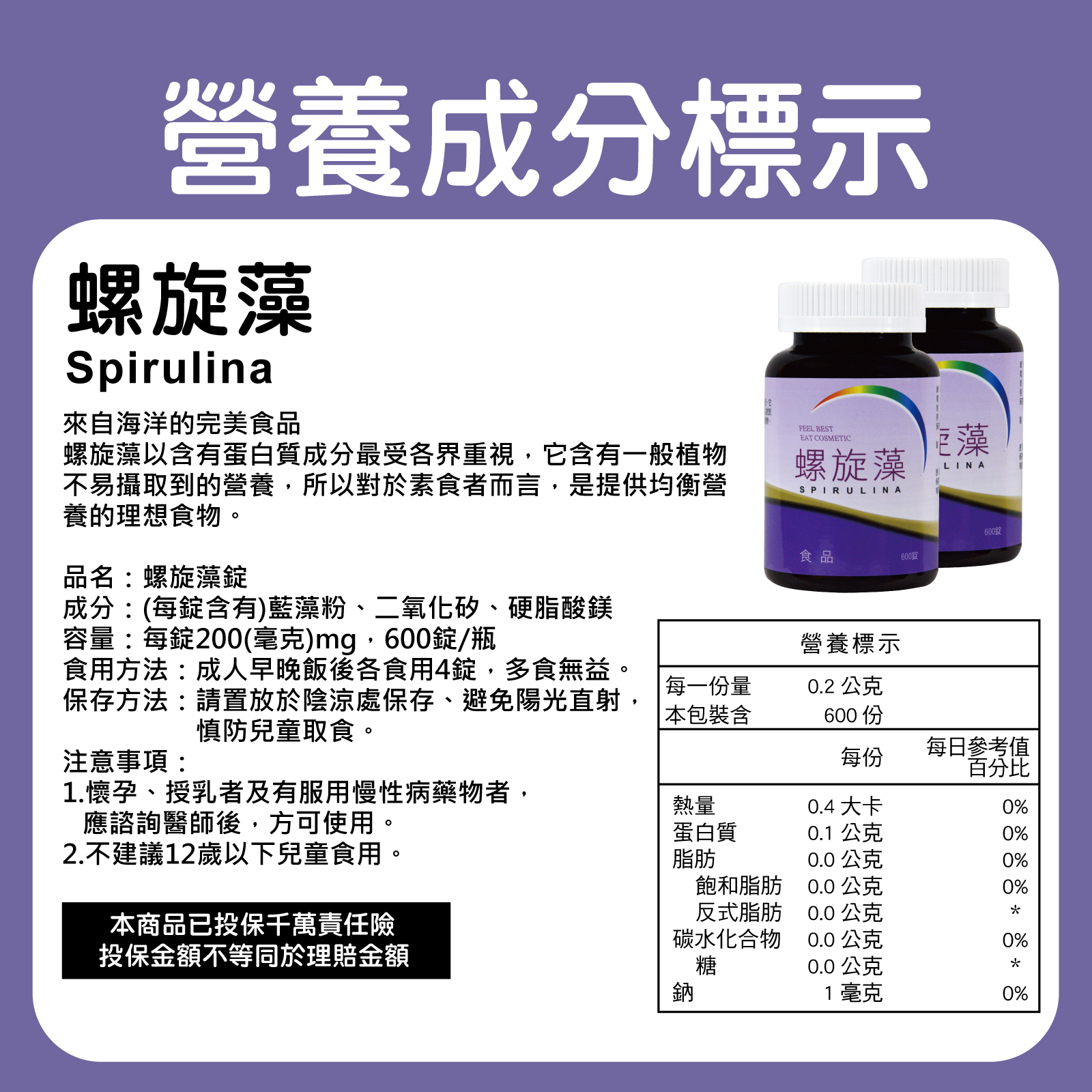 (每錠含有)藍藻粉、二氧化矽、硬脂酸鎂。