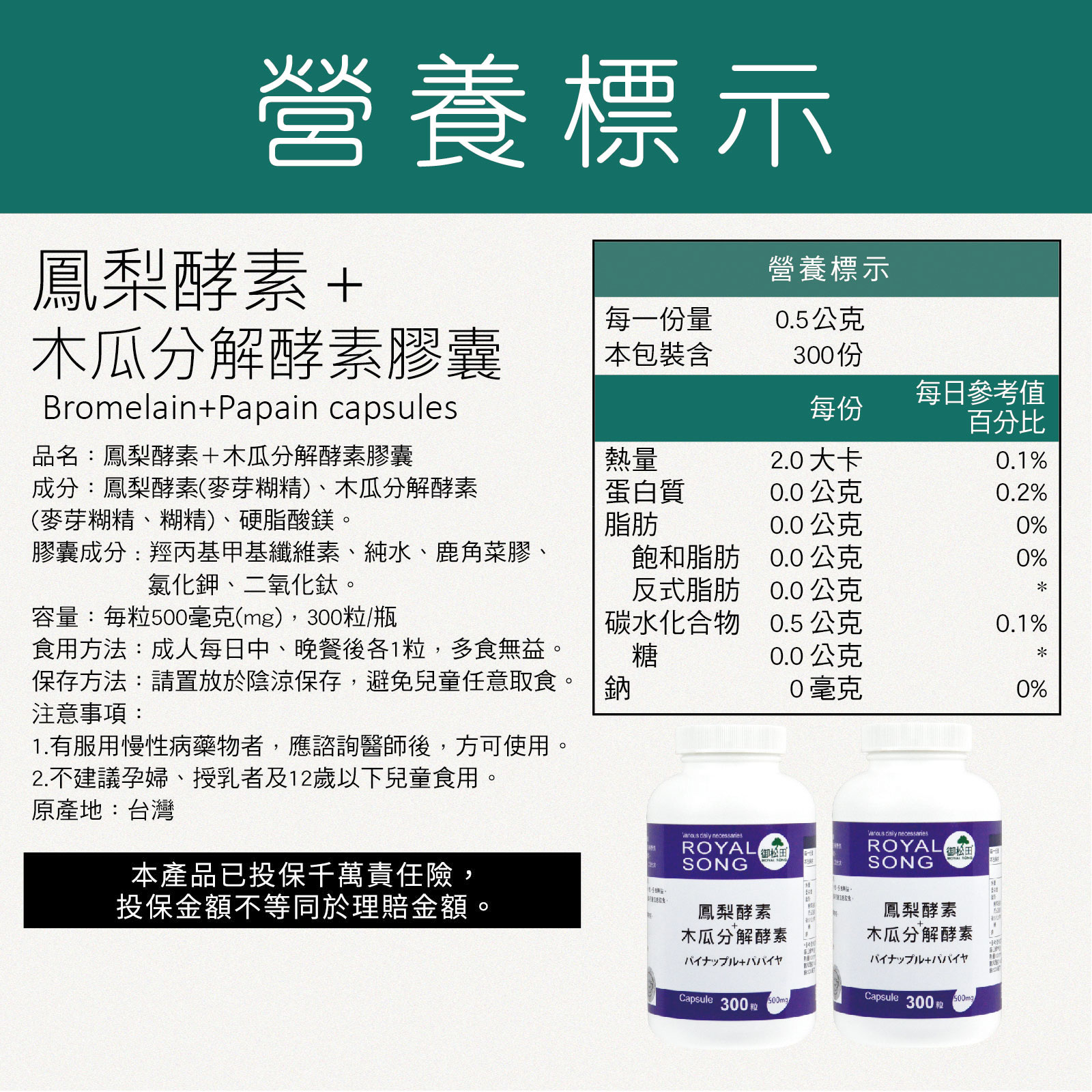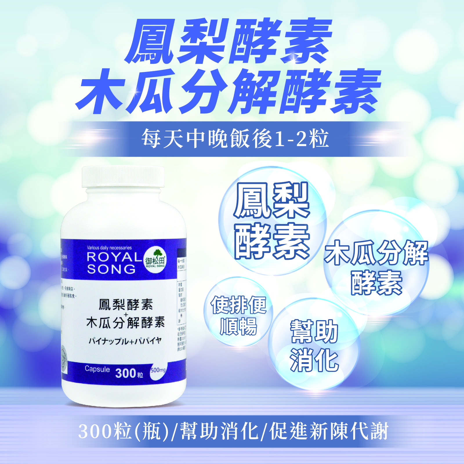 商品名稱【御松田】鳳梨酵素+木瓜分解酵素(300粒/瓶)