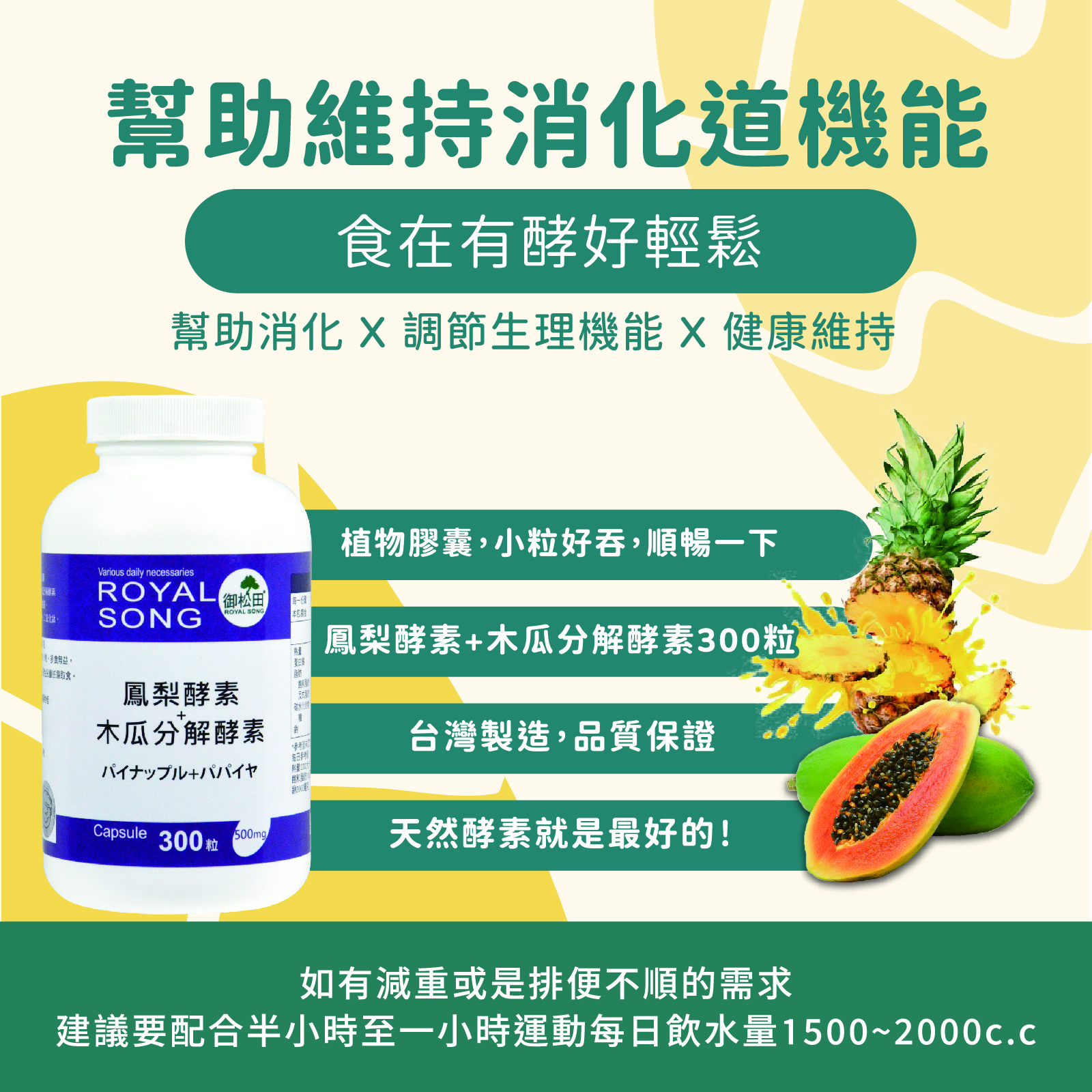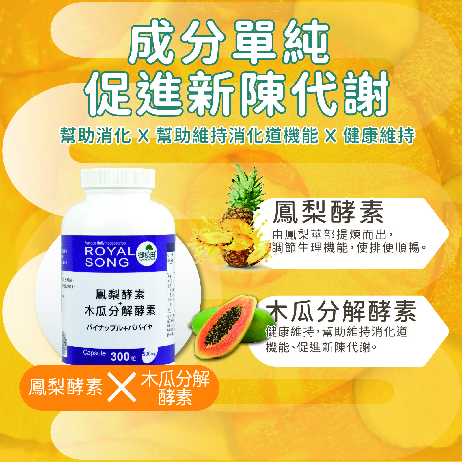 • 木瓜分解酵素,促進新陳代謝