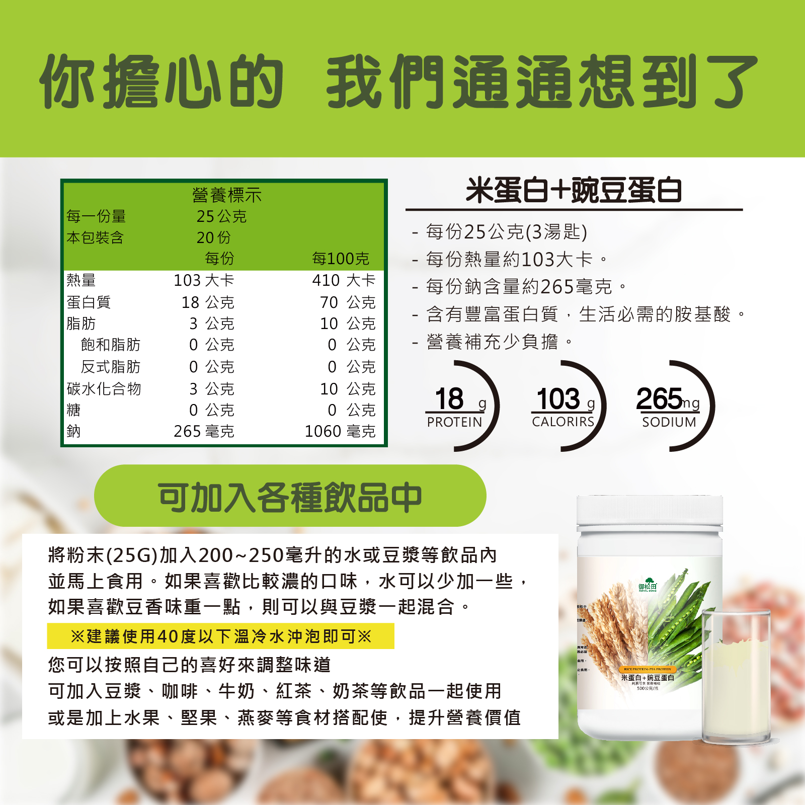 ※溫馨提醒:本產品含有大豆,不適合其過敏體質者食用。